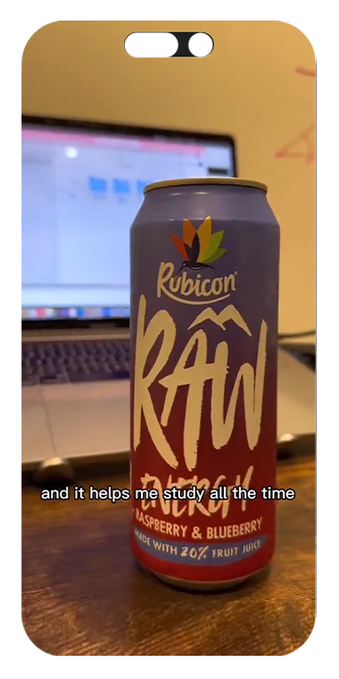 Rubicon Raw aimed to capture the attention of UK students by highlighting its health-conscious energy boost designed for a busy academic lifestyle. To achieve this, we partnered with Revishaan, a relatable and energetic creator, known for producing content that resonates with students juggling multiple priorities. His authentic style allowed for a natural integration of Rubicon Raw as a part of his daily routine.