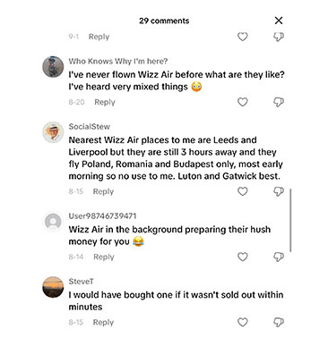 In her videos, Bilan introduced the affordability and range of Wizz Air’s destinations by navigating their website, demonstrating how easy it is to plan a trip on a student budget. With clips of her exploring the website and highlighting flights to popular destinations like Cyprus, Egypt, and Morocco, Bilan brought the travel planning experience to life. Filming at her local airport added an aspirational touch, giving viewers a real sense of what their own travel journey with Wizz Air could look like.