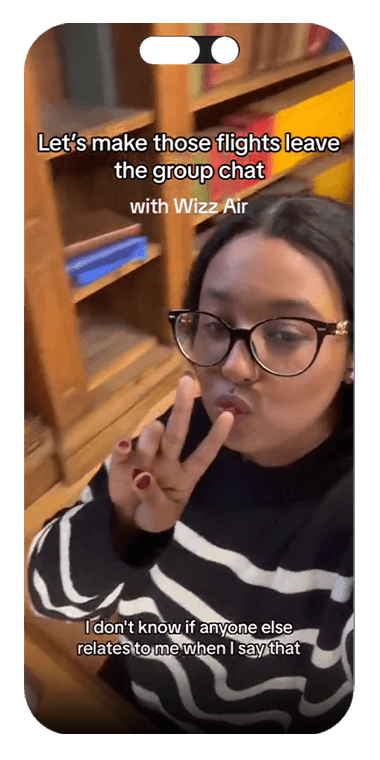 The campaign’s UGC approach, rooted in relatable, everyday student experiences, subtly emphasized Wizz Air’s value and dependability. By positioning Wizz Air as the student-friendly airline for affordable adventures, this campaign successfully appealed to young audiences looking for quality without the high price tag, establishing Wizz Air as a go-to travel option for budget-conscious students.